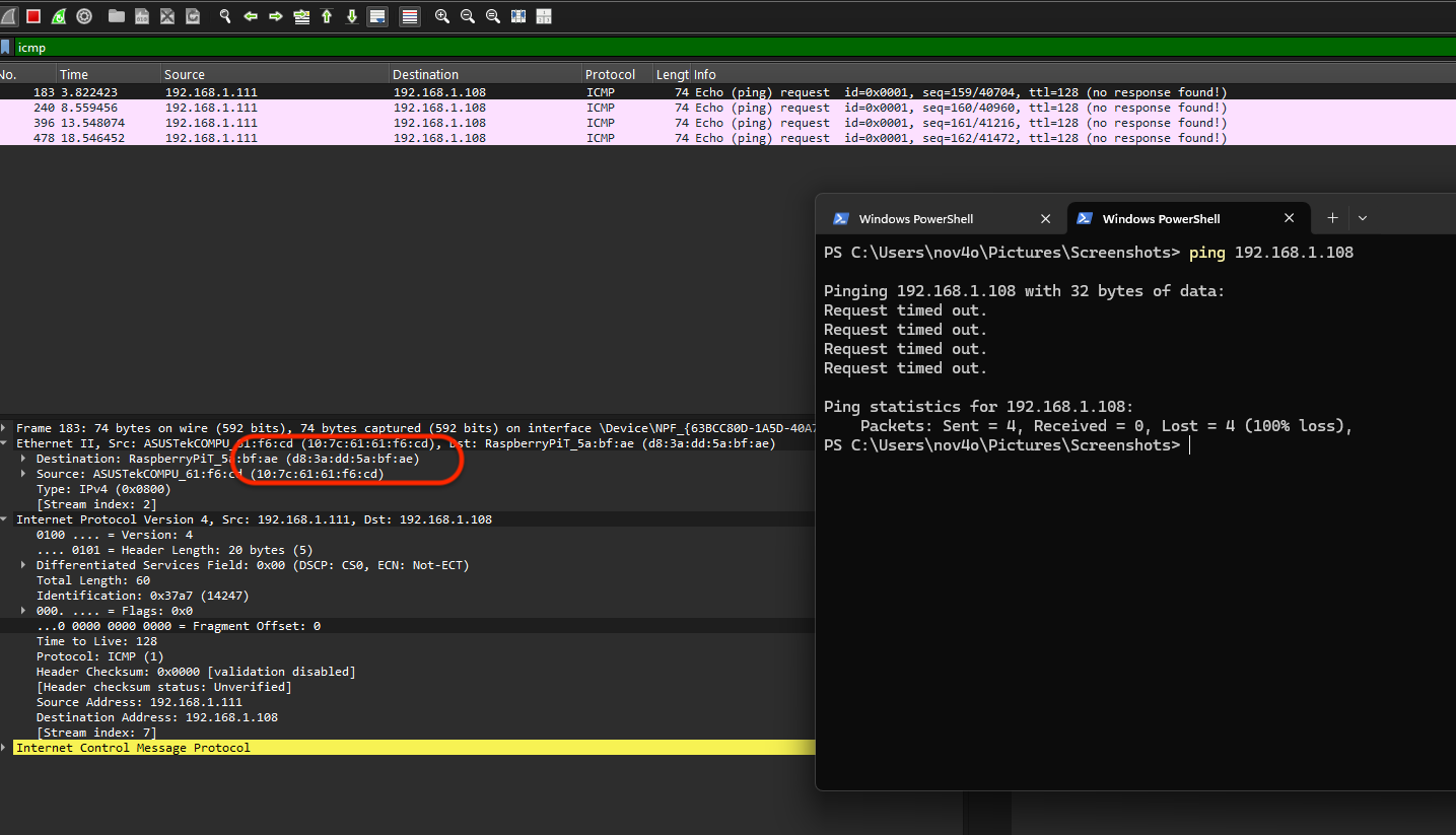 | raspberryPi (attacker) | 192.168.1.100 | d8-3a-dd-5a-bf-ae |